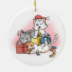 Three Cute Cartoon Christmas Kittens unwrap Gifts Ceramic Tree Decoration