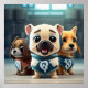 Three Cute little puppy dogs celebrating a birthday and posing for the camera beautiful