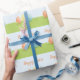 Wrapping Paper with three, smiling, Easter egg characters. The words “Happy Easter” are customisable.