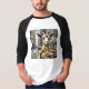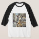 This raglan-style shirt features a humourous and whimsical graphic of a goat enjoying street food in a bustling city scene. The goat, with a quirky expression, is holding a taco and a kebab skewer, standing in front of a New York City-style halal food cart and iconic yellow taxis. The playful illustration captures a mix of urban life and unexpected animal charm, making this shirt a fun choice for those with a sense of humour and love for city culture. The black sleeves and white body provide a classic contrast, allowing the vibrant, detailed artwork to stand out.