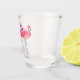 This shot glass features three watercolor image flamingos, all lined up. Colours include pink and violet. Bright and colourful! *Thanks to ClipArtBrat for the flamingo images in this design.