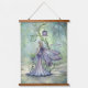 Set of hanging, wood topped tapestries featuring "Meditation", "Enchanted Garden" and "Early Spring" artworks by Molly Harrison