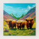 Dive into the serene beauty of the Scottish Highlands with our stunning jigsaw puzzle featuring a picturesque scene of three Highland cows nestled in a lush green valley. These majestic creatures, with their shaggy brown fur and impressive curved horns, stand gracefully against a breathtaking backdrop of towering snow-capped mountains and vibrant, multi-hued slopes. Each piece of this 1000-piece puzzle invites you to immerse yourself in nature's tranquillity, complete with patches of colourful wildflowers that add charm to the idyllic landscape. Perfect for nature lovers and puzzle enthusiasts alike, this puzzle not only offers a delightful challenge but also a visual escape to one of nature's most enchanting scenes.