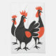 Three French Hens Retro Mid-Century Cut-Out 4 Tea Towel