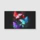 Three luminous, red, purple, green, textured, night butterflies on black luminous background.