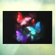 Three luminous, red, purple, green, textured, night butterflies on black luminous background.