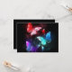 Three luminous, red, purple, green, textured, night butterflies on black luminous background.