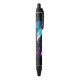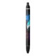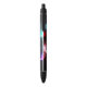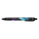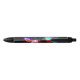 Three luminous, red, purple, green, textured, night butterflies on black luminous background.