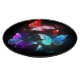 Three luminous, red, purple, green, textured, night butterflies on black luminous background.
