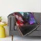 A quality printed throw has its advantages. This is a much finer weave throw than its loopier cousins, and though lighter, it is worth the investment for custom room accessorizing. The back is much prettier than the typical brown, and the fringe on the long sides very vivid, the selvage nicely done. Before photographing, I washed the throw in cold water, delicate, with a thicker woven throw the same size. On tumble dry low, this throw was dry in half the time as the other. This is a very practical quality if you use throws for furniture covers or to wrap up in frequently. The sleekness of the fabric makes it a great layer for accenting or protecting without the feeling of sitting on too much stuff. Perfect for napping or when you feel a light chill coming on. The color printing is beautiful and on this fabric, matched the design and color of my Photoshop image. This is an advantage for blending room fabrics and colors. The fringe on the short sides prints the colors from the design image and therefore varies from the side fringe. I streaked a white fractal line through the plaid pattern to give the illusion of weaving. This printed as crisp as an illusory thread, and put some white in the short side fringe, showing another advantage of print vs loomed- for artistic purposes, line lines, detail, and color integrity can be planned and preserved. My loomed throws have color limitations and more of a needlepoint texture. Print throws reproduce an exact image. The throw felt a little stiff straight out of the package, but this went away in the first delicate wash. Of course I searched the wash water for ink or bleeding and there was none.