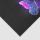 Three luminous, red, purple, green, textured, night butterflies on black luminous background.