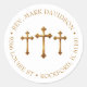 This beautiful personalised address label features three gold crosses. Encircled with the priest's name and address, this label is perfect for adding a sacred touch to personal or parish mailings. Printed on high-quality, acid-free paper, it offers vibrant full-colour printing, a scratch-resistant front, and an easy peel-and-stick back. Available in matte or glossy finishes, this address label is ideal for religious correspondence, reflecting the profound devotion to the Holy Family.