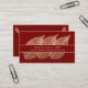 This unique, nature-inspired business card features three golden leaves, tilted at an angle, with your name in gold. The background is a maroon, which some might describe as dark red or burgundy, reminiscent of autumn leaves on a fall day. On the front your name and title appear in a box overlain on the leaves. On the back, your email, name, and phone appear at the top in larger type, with your address, website, and other details on the bottom. Two small gold leaves provide accents at the top. The template makes it easy to enter your text, and you can mix up which details you include where, or you can opt to further optimize colors and placement.