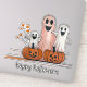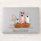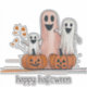 This is a cute halloween sticker that features three happy ghosts and two Jack o' Lanterns. You can customise the default text "happy halloween".