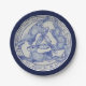 Three Hares Rabbits Blue White Tile Medallion Paper Plate