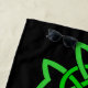 This custom beach towel has three vibrant green Irish Celtic Knots intertwined on a black background.