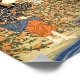 Another print by the famous Japanese artist Utagawa Kuniyoshi who worked in the 19th century. Utagawa created a lot of prints with women as the main theme. In this print we see 3 Japanese ladies crossing a small river or stream, while trying not to get their kimonos wet from the water. This is a very colourful print when compared to other artworks of that time. Bright and happy colours were used - red, blue, light blue, a white / pink colour, yellow, browns and more. As usual Utagawa has signed the artwork in Kanji characters and Hiragana (Japanese writing).