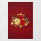 The composition of two artistically painted red roses and one golden rose, decorated with gold, jewel leaves on textured background.