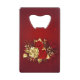 The composition of two artistically painted red roses and one golden rose, decorated with gold, jewel leaves on textured background.