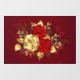 The composition of two artistically painted red roses and one golden rose, decorated with gold, jewel leaves on textured background.