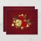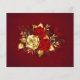 The composition of two artistically painted red roses and one golden rose, decorated with gold, jewel leaves on textured background.