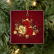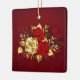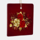 The composition of two artistically painted red roses and one golden rose, decorated with gold, jewel leaves on textured background.