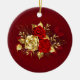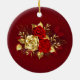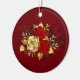 The composition of two artistically painted red roses and one golden rose, decorated with gold, jewel leaves on textured background.