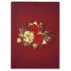 The composition of two artistically painted red roses and one golden rose, decorated with gold, jewel leaves on textured background.