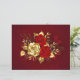 The composition of two artistically painted red roses and one golden rose, decorated with gold, jewel leaves on textured background.