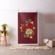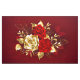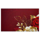 The composition of two artistically painted red roses and one golden rose, decorated with gold, jewel leaves on textured background.
