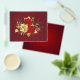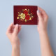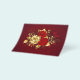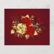 The composition of two artistically painted red roses and one golden rose, decorated with gold, jewel leaves on textured background.