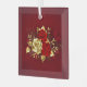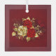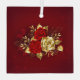 The composition of two artistically painted red roses and one golden rose, decorated with gold, jewel leaves on textured background.