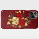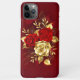 The composition of two artistically painted red roses and one golden rose, decorated with gold, jewel leaves on textured background.