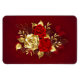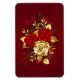 The composition of two artistically painted red roses and one golden rose, decorated with gold, jewel leaves on textured background.