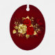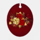 The composition of two artistically painted red roses and one golden rose, decorated with gold, jewel leaves on textured background.