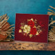 The composition of two artistically painted red roses and one golden rose, decorated with gold, jewel leaves on textured background.