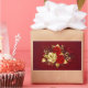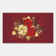 The composition of two artistically painted red roses and one golden rose, decorated with gold, jewel leaves on textured background.