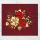 The composition of two artistically painted red roses and one golden rose, decorated with gold, jewel leaves on textured background.