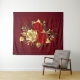 The composition of two artistically painted red roses and one golden rose, decorated with gold, jewel leaves on textured background.