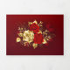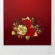 The composition of two artistically painted red roses and one golden rose, decorated with gold, jewel leaves on textured background.