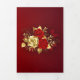 The composition of two artistically painted red roses and one golden rose, decorated with gold, jewel leaves on textured background.
