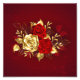 The composition of two artistically painted red roses and one golden rose, decorated with gold, jewel leaves on textured background.
