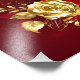 The composition of two artistically painted red roses and one golden rose, decorated with gold, jewel leaves on textured background.