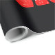 On this image you see the black silhouettes of the three Kings, or three Wise Men, on their way on Christmas night, riding on camels. On the background, a red sky with a gradient to darker red, filled with white glowing stars in various sizes.