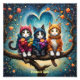 In this tranquil scene, three cats are portrayed in a moment of quiet grace, their innocent eyes wide and curious as they observe their surroundings. Each cat stands with poise and elegance, their fur bathed in soft light that accentuates the delicate contours of their forms. The atmosphere is serene, with a sense of stillness that envelops the scene like a comforting embrace.