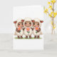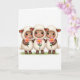 This card shows three fluffy, lamb-like friends standing close together on a white background, their rounded bodies and soft texture giving them a cozy look. They face forward with large dark eyes, rosy cheeks, and small upturned smiles, and the way they lean in slightly suggests an affectionate friendship. Each one holds a bright pink, daisy-shaped flower with a yellow center and a thin green stem, like they’re sharing matching gifts 🌷. Light pink accents appear inside their ears and on their cheeks, tying the flowers’ color into their faces. A short greeting sits near the top in a light pink print, centered above the characters. Along the bottom, a narrow strip of green grass grounds the scene, with gentle strokes that hint at a spring morning 🐰. The three flowers tilt at slightly different angles, and the grass band runs straight across the lower edge beneath their feet.