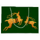 Three Leaping Reindeer on Green Damask Large Gift Bag