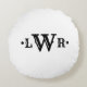 Three Letter Monogram Custom Elegant Black & White Round Cushion
