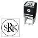 Stylish self inking rubber stamp with custom three letter monogram with a dotted circle around the letters. Personalise the letters to suit your needs. Great for every day use and special occasions.