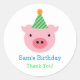 This cute and colourful favour sticker is ideal to celebrate a birthday party with a fairy tale theme. It features a character illustration of the Three Little Pigs wearing a party hat. Unisex sticker perfect for a young child and an upbeat event.